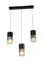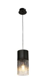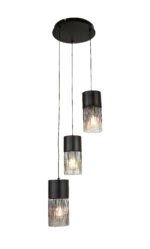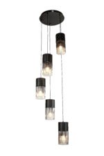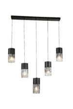Add modern elegance to your space with the 5-Light Black Ribbed Glass Cascade Pendant. This striking fixture features five cylindrical pendants suspended at varying lengths from a round black ceiling plate. Each pendant is finished in matte black and houses a vertically ribbed clear glass shade that softly diffuses light while showcasing the bulb within. Ideal for staircases, dining areas, and entryways, this design adds depth, dimension, and a warm contemporary feel.